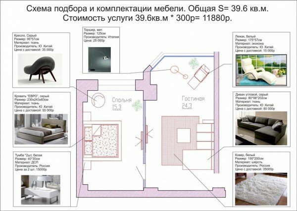 — Схему комплектации интерьера мебелью, декором и светом с единой дизайнерской концепцией. В каталоге указаны габариты, цены, цветовые решения, фотографии и характеристики. Вам будет предложено несколько вариантов подобранных товаров на выбор